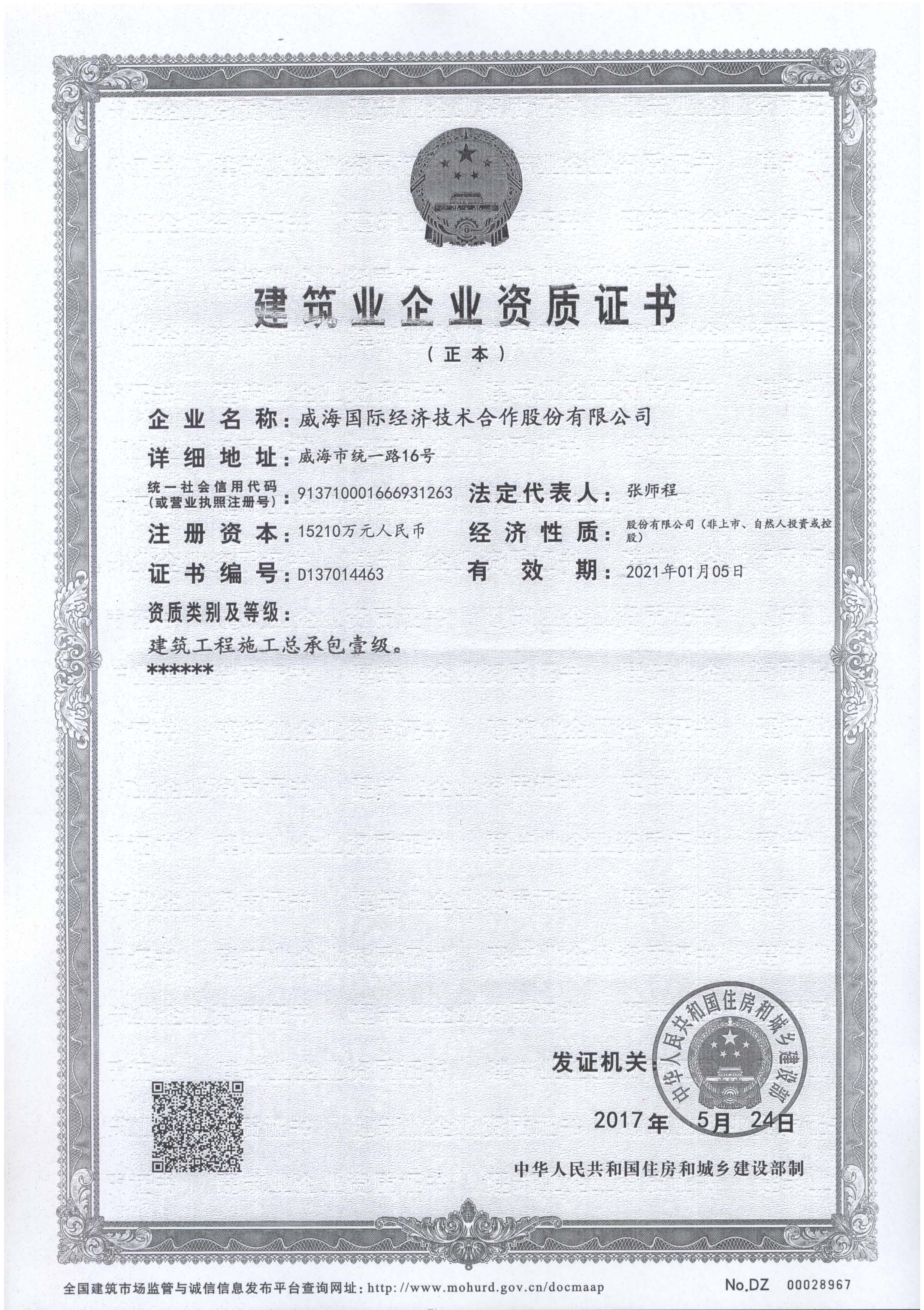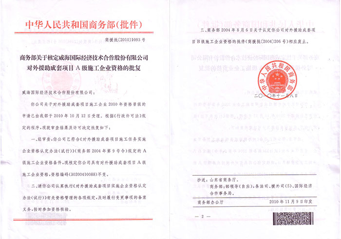対外援助プロジェクトA級建設(shè)企業(yè)許可書…