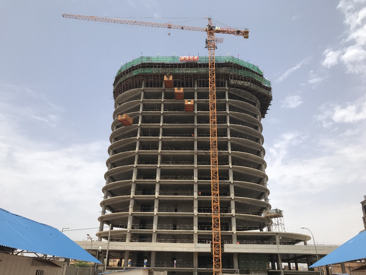 本件プロジェクトはブルキナファソの首都ワガドゥグー市に位置し、総建築面積約16000平方メートル、建築総高さ57メートル、地下1階地上15階で、現(xiàn)在ブルキナファソで最も高い建築となっており、現(xiàn)地のランドマーク的な建築の一つでもある。本件プロジェクトでは、単回コンクリート連続打設(shè)數(shù)、大型高所懸垂コンクリート構(gòu)造支持體系の施工などの面で、同國の建築業(yè)界で史上最高記録を多數(shù)更新した。著工以來、プロジェクトチームは新型コロナによる影響や、政局不安など數(shù)々の困難を克服し、工期厳守?品質(zhì)確保?安全確保?コスト削減に向け多くの措置を講じ、成功裏に本體落成を果たした。
