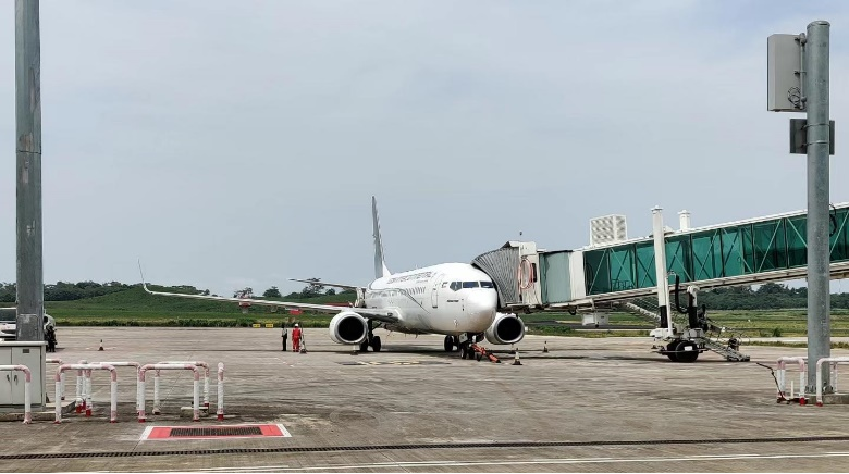 飛行機(jī)はマラボ國際空港エプロンに無事に駐機(jī)