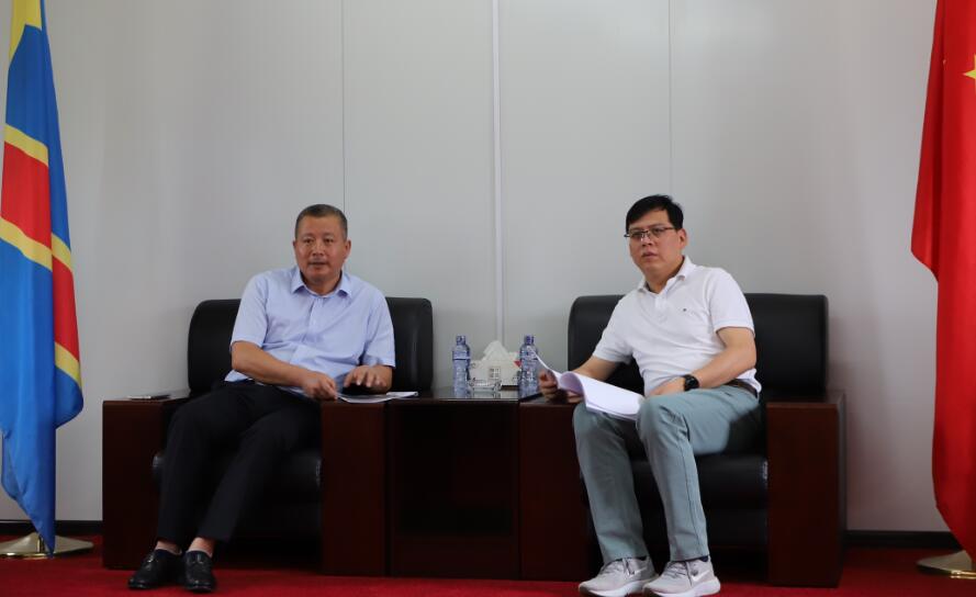近日,中國駐剛果(金)大使朱京蒞臨恩吉利國際機(jī)場項目組,考察項目組防控新冠肺炎疫情措施。項目組長于清華接待了大使一行。